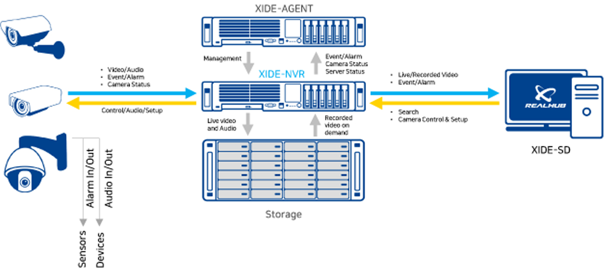XIDE-NVR(네트워크 영상 저장분배) Software는 네트워크 카메라 및 비디오서버 영상을 효율적으로 저장하고 동시에 스트리밍 기능을 수행하는 제품으로, 카메라 영상의 수에 제한되지 않고 통합 저장분배 구성이 가능한 확장성과 사용자 목적에 맞는 유연성을 제공해 드립니다.